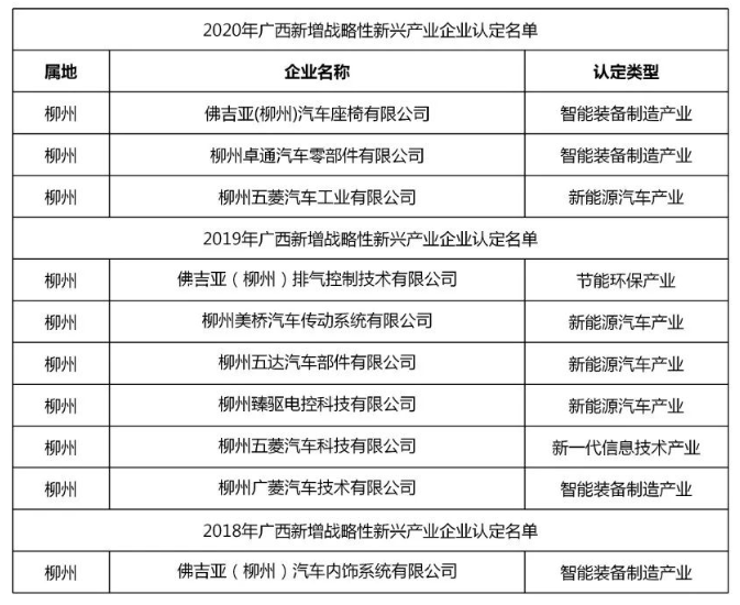 戰(zhàn)略性新興產(chǎn)業(yè)是以重大技術(shù)突破和重大發(fā)展需求為基礎(chǔ),對(duì)經(jīng)濟(jì)社會(huì)全局和長(zhǎng)遠(yuǎn)發(fā)展具有重大引領(lǐng)帶動(dòng)作用,包括:新一代信息技術(shù)產(chǎn)業(yè)、智能裝備制造產(chǎn)業(yè)、新材料產(chǎn)業(yè)、新能源汽車(chē)產(chǎn)業(yè)等6大領(lǐng)域。至今,廣西汽車(chē)集團(tuán)一共有10家所屬企業(yè)獲得該認(rèn)定,其中智能裝備制造產(chǎn)業(yè)方向4家,新能源汽車(chē)產(chǎn)業(yè)方向4家,新一代信息技術(shù)產(chǎn)業(yè)方向1家,節(jié)能環(huán)保產(chǎn)業(yè)方向1家。
